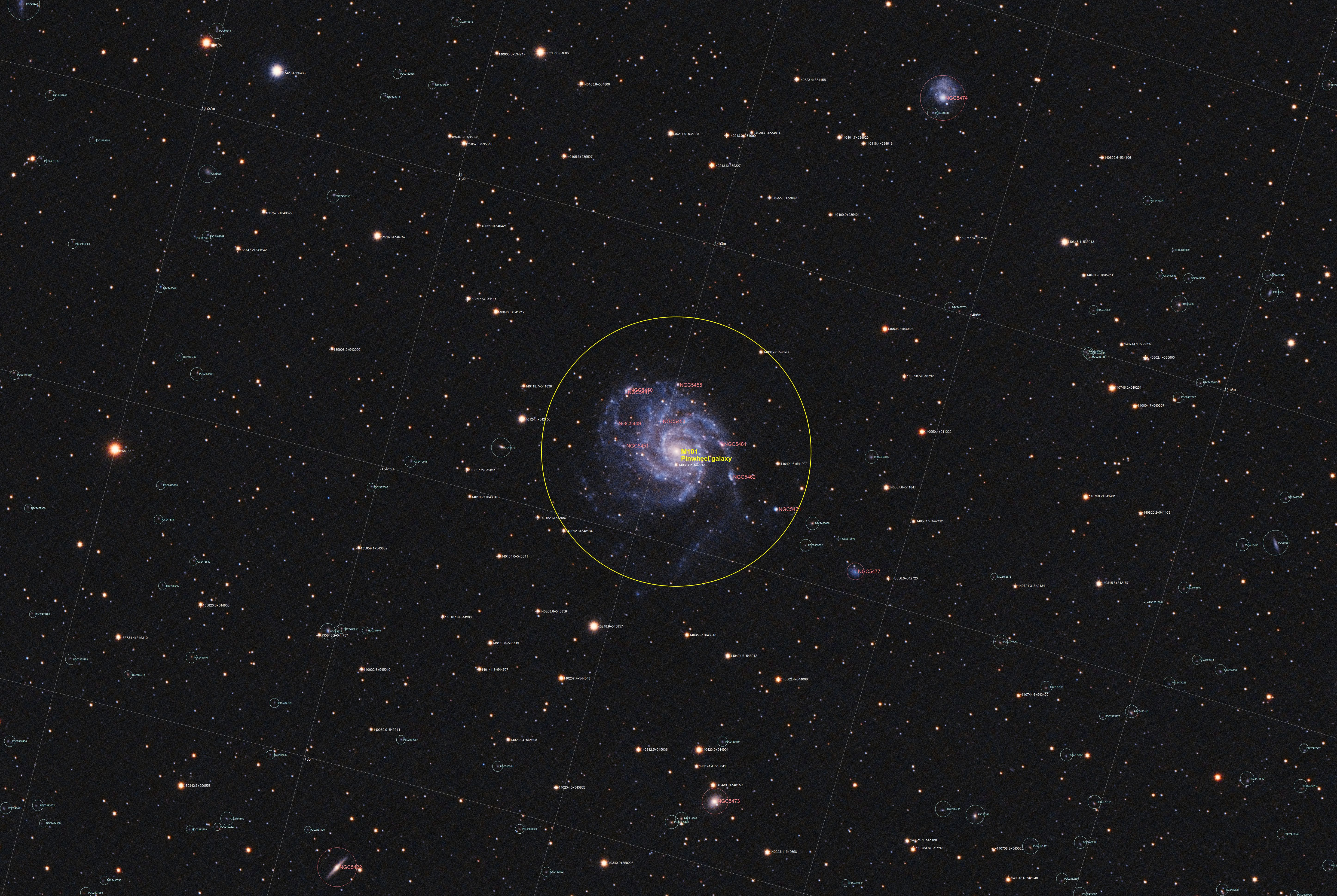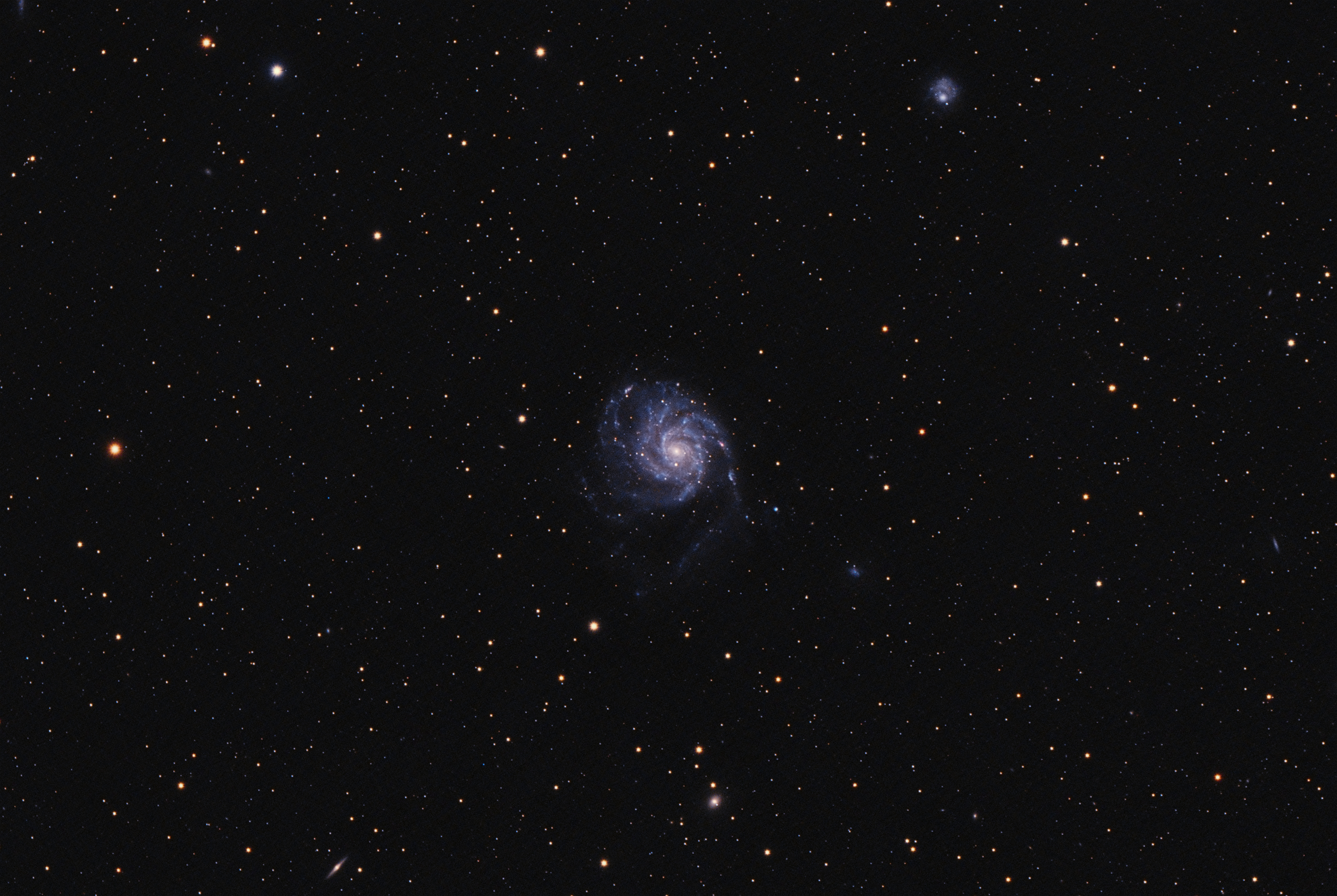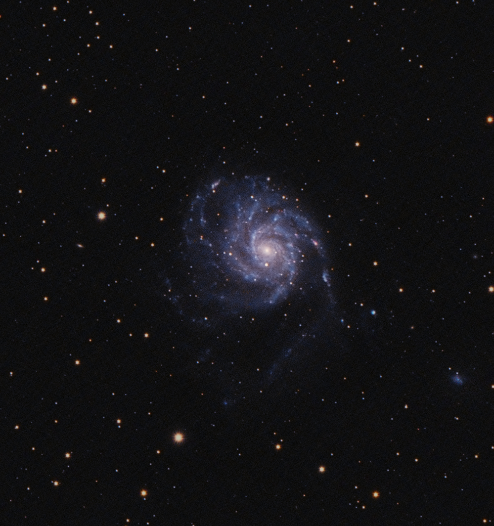 바람개비은하. 큰곰자리에서 찾아볼 수 있다. 우리은하보다 2배나 많은 1조 개의 별들을 거느리고 있다고 한다. 사진에 노이즈가 다분하긴 하지만 은하의 색감이 예쁘게 나온 것으로 만족한다. 주변에 흩어져 있는 작은 은하들을 찾아보는 재미가 있다.