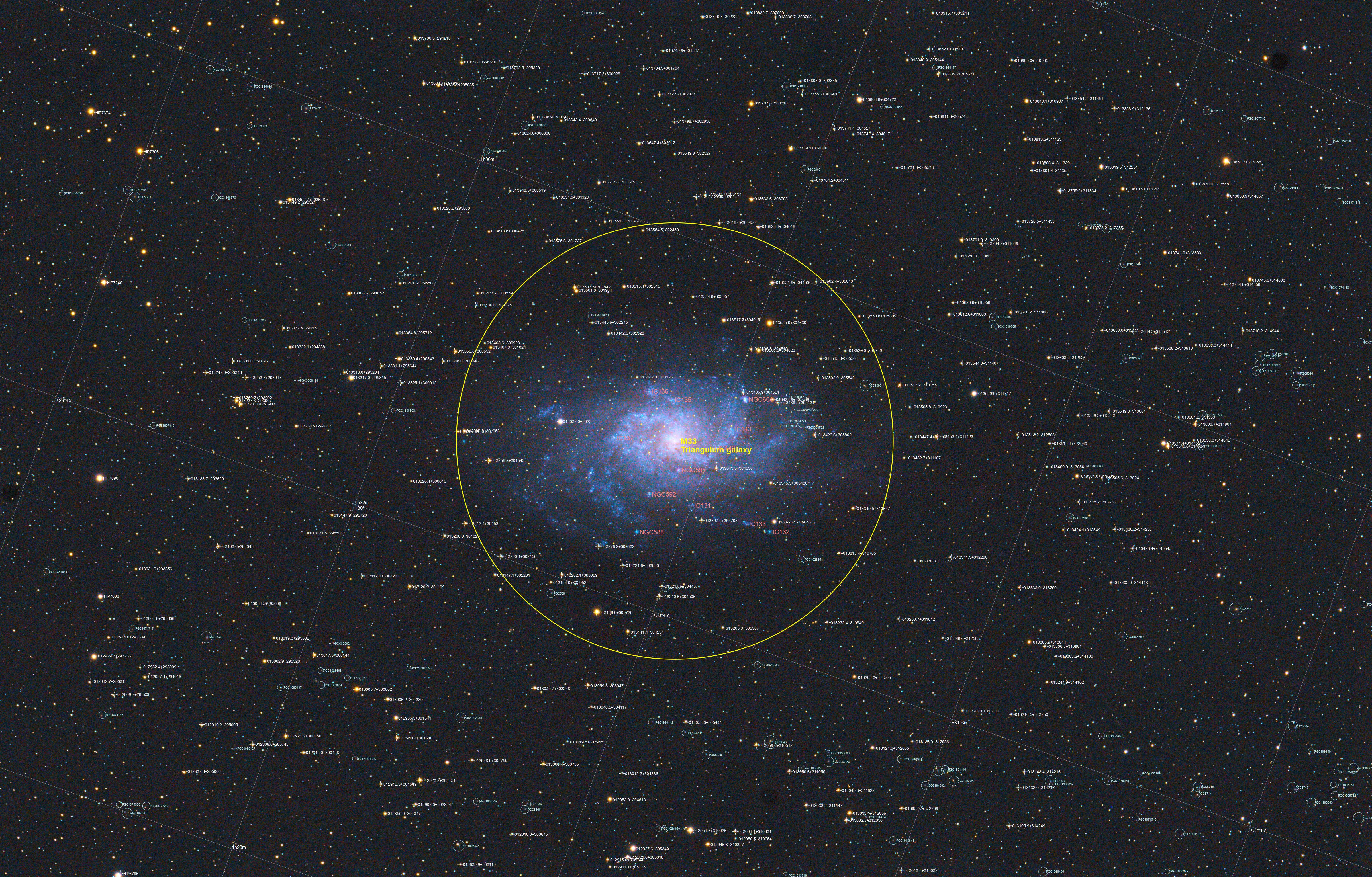 삼각형자리 은하는 여기서 273만 광년 떨어져 있다. 이 정도면 은하치곤 매우 가까운 거리라 우리와 이웃사촌이라 할 수 있겠다. 사실 우리가 주로 찍는 은하들은 죄다 가까운 녀석들이긴 하다. 먼 녀석들은 찍어봐야 점으로 보일 뿐.